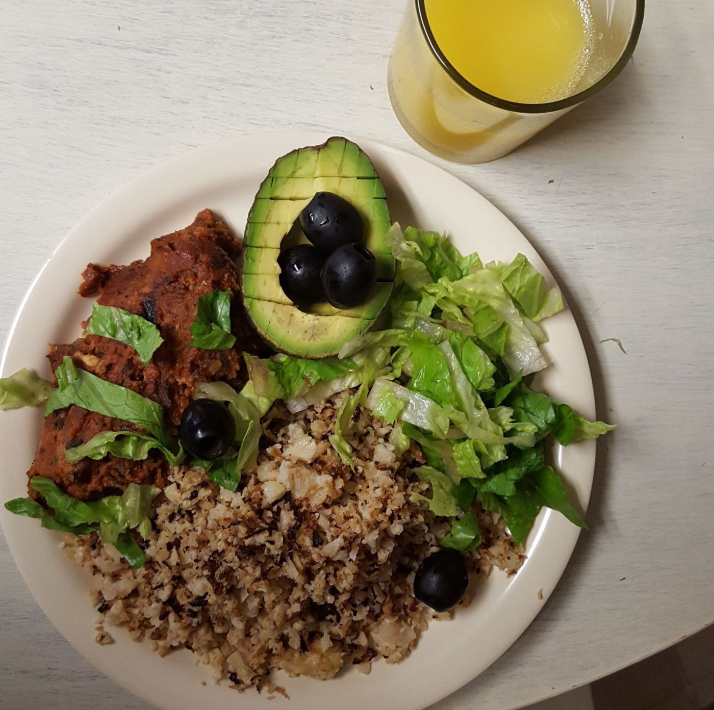 Some meals I made when we did a Whole30 in August/September 2017: The first one, a quick and easy burrito bowl. Cauliflower rice, ground turkey taco meat, avocado, lettuce, and all the olives. Second, “tacos” with ground turkey taco meat/shredded chicken, avocado, olive, and hot sauce. I found these an easy meal to whip up with little to no effort. I do like to add a cucumber pico as well. *drool*