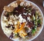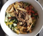 Another random salad that was crazy but surprisingly delicious: I used up leftover quinoa and roasted peppers/onions/Brussels sprouts along with egg whites, chia seeds, sesame crackers, avocado, sauerkraut, goat cheese, and sesame ginger dressing. All of these on a bed of greens made for a delicious and filling meal.